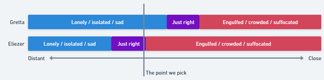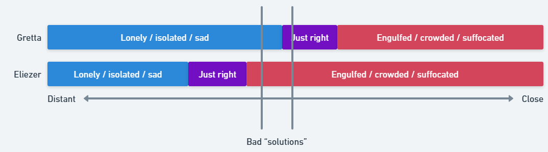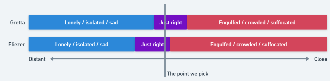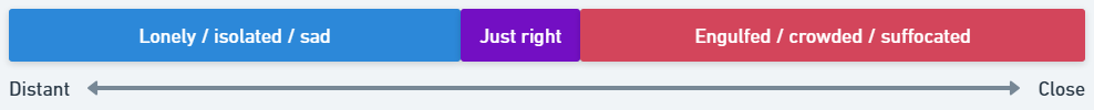 If my person gets too far away from me, I feel lonely and sad, but if they get too close to me, I feel suffocated. There’s this very narrow band in the middle that feels good, and it’s kind of hard to hit it just right, because it’s a moving target.